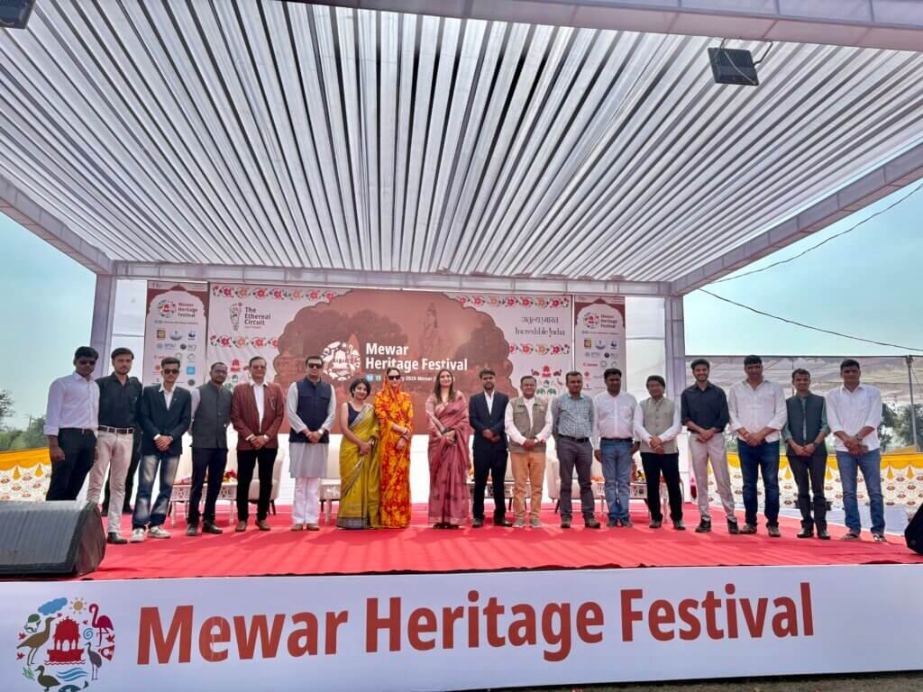 बर्ड विलेज मेनार में इनक्रेडिबल इंडिया और इथेरियल सर्किट के संयुक्त तत्वावधान में दो दिवसीय मेवाड़ हेरिटेज फेस्टिवल का शुभारंभ निवृत्ति कुमारी मेवाड़ ने किया। उन्होंने मेनारवासियों द्वारा पक्षियों के संरक्षण और संवर्धन के लिए किए जा रहे प्रयासों की सराहना करते हुए इसे ग्रामीणों की जागरूकता और समर्पण का अद्भुत उदाहरण बताया। फेस्टिवल में डीएफओ अजय चित्तौड़ा, जीपीएस अध्यक्ष राहुल भटनागर, नेहा पालीवाल, सौरभ पालीवाल, इंटक के गौरव सिंघवी और अधिष्ठाता नवीन अग्रवाल विशिष्ट अतिथि रहे। वक्ताओं ने अपने संबोधन में मेवाड़ हेरिटेज फेस्टिवल को इको-टूरिज्म क्षेत्र में बड़ा कदम बताते हुए इसे स्थानीय संस्कृति और पर्यावरण संरक्षण का अनूठा संगम कहा। ग्रामीणों ने अतिथियों का पारंपरिक स्वागत कर मोमेंटो भेंट किए। पहले दिन फेस्टिवल परिसर में 19 स्टॉल लगे, जिनमें फोटो एग्ज़ीबिशन, बस्सी की कावड़ कला, जीआई टैग मोलेला टेराकोटा, कैनन वाइल्डलाइफ फोटोग्राफी, ट्राइबल आर्ट एंड क्राफ्ट, क्ले क्राफ्ट, आर्कियोलॉजी वर्कशॉप, पॉटरी मेकिंग, ब्लॉक प्रिंटिंग, हैंड एम्ब्रॉयडरी, स्टेंसिल प्रिंटिंग और सीड बॉल जैसी गतिविधियाँ शामिल थीं। पूजा मेनारिया ने मेनार ग्राम का इतिहास कविता के माध्यम से प्रस्तुत कर दर्शकों को भावविभोर कर दिया।